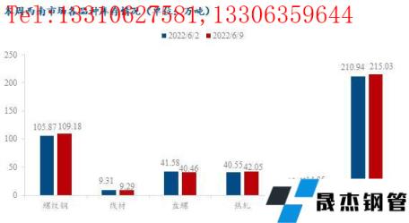 據(jù)調(diào)研,截止2022年6月9日,西南市場厚壁無縫鋼管累計(jì)社會(huì)庫存為215.03萬噸,環(huán)比增加4.09萬噸,增幅1.94%。