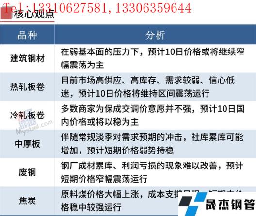 建筑厚壁無縫鋼管:6月9日,全國31個主要城市20mm三級抗震螺紋鋼均價4838元/噸,較上個交易日漲3元/噸。產業數據方面,本周螺紋鋼產量小幅增加,庫存方面,雖然廠庫下降,但社庫出現回升,同時在雨季影響下,需求端整體低迷。短期來看,目前市場需求恢復狀況不及預期,南方汛期疊加高考日影響,下游需求整體低迷,且投機性需求較差。因此短期在弱基本面的壓力下,預計10日國內建筑厚壁無縫鋼管價格或將繼續窄幅震蕩為主。