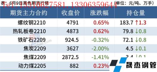 熱軋板卷:6月9日,全國24個主要城市4.75mm熱軋板卷均價4910元/噸,較上個交易日上漲1元/噸。現貨市場早盤報價小幅上漲,漲后市場成交一般,午后盤面反復,現貨價格小幅走弱,整體成交依然偏弱,需求恢復較慢,庫存仍在累積,市場心態承壓。整體來看,目前盤面與現貨走勢稍有背離,陷入“強盤面弱現貨”局面,高供應、高庫存和較弱的需求和低迷的信心是造成上述情況的主要因素,市場目前確實有在進行自我修復,但不管是信心的樹立還是需求的回升都仍然需要時間,而近期市場熱議的限產也確實對現貨帶來一定支撐,但相應的原料走弱也會導致成材成本位下移成材價格被動跟隨,所以短期市場價格仍在博弈中維持震蕩,價格持續維持仍需注意變現和風險累積,另外本周熱軋產量增加13.80萬噸,廠庫下降2.51萬噸,社庫增加9.21萬噸。綜合來看,預計10日熱軋價格仍將維持區間震蕩運行。