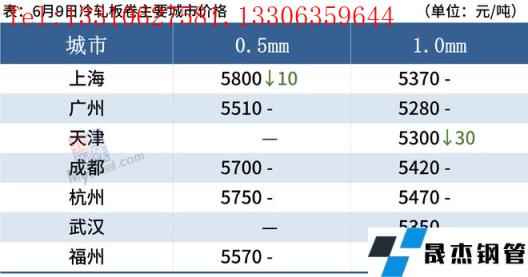 冷軋板卷:6月9日,全國24個主要城市1.0mm冷卷均價5435元/噸,較上個交易日下跌5元/噸。市場需求持續疲軟,下游企業按需采購,據悉,目前部分商家低價成交尚可,高價成交艱難,多以出貨回籠資金為主。即便黑色系期貨盤面震蕩偏強運行,但現貨市場跟漲動力不足,多數商家為保成交調價意愿并不強,且整體市場成交處于中等偏下水平。庫存方面,本周冷軋無縫厚壁鋼管廠家庫存40.43萬噸,周環比減少0.32萬噸,社會庫存136.09萬噸,周環比減少0.02萬噸,周消費量84.21萬噸,環比增加0.51萬噸。綜合來看,預計10日國內冷軋板卷價格或將以穩為主。