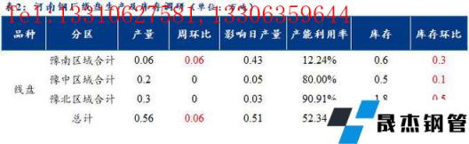 1、調(diào)研數(shù)據(jù)顯示,統(tǒng)計的河南地區(qū)10家建筑厚壁無縫鋼管樣本無縫厚壁鋼管廠家中,河南省無縫厚壁鋼管廠家線盤日均產(chǎn)量0.56萬噸,較上周產(chǎn)量增加0.06萬噸;線盤產(chǎn)能利用率52.34%,較上周增幅12%。