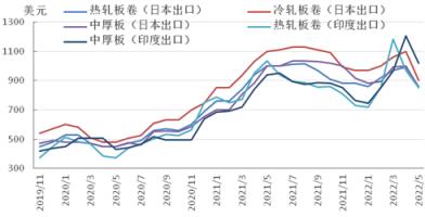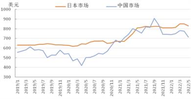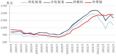 圖5 2019-2022年亞洲扁平材市場價格走勢圖
