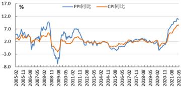 圖1 美國(guó)PPI、CPI同比走勢(shì)