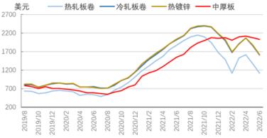 圖5 2019-2022年亞洲扁平材市場價(jià)格走勢圖
