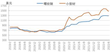 美國長材價(jià)格小幅下跌。6月底,美國中西部無縫鋼管廠家螺紋鋼價(jià)格下跌10美元至1290美元,進(jìn)口螺紋鋼價(jià)格下跌175美元至1075美元;中西部無縫鋼管廠家小型材價(jià)格下跌95美元至1475美元,進(jìn)口小型材價(jià)格下跌70美元至1360美元。美聯(lián)儲(chǔ)持續(xù)加息,利率的快速上調(diào)增加購房者負(fù)擔(dān),將對(duì)房地產(chǎn)市場形成壓制,影響厚壁鋼管需求。紐柯厚壁無縫鋼管于6月14日宣布將線材價(jià)格下調(diào)40美元/短噸,美國厚壁無縫鋼管公司Optimus Steel宣布自7月1日起其線材價(jià)格下調(diào)40美元/短噸。綜合來看,7月份北美市場長材價(jià)格或延續(xù)震蕩調(diào)整走勢。