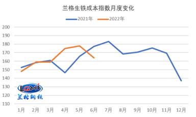 上半年,國(guó)內(nèi)厚壁無(wú)縫鋼管市場(chǎng)沖高回落,整體鋼價(jià)明顯下移。據(jù)云商平臺(tái)監(jiān)測(cè)數(shù)據(jù)顯示,上半年,綜合厚壁鋼管價(jià)格指數(shù)均值為5178元/噸,較上年同期下跌114元/噸,跌幅為2.2%。從成本端來(lái)看,上半年,在4、5月份原料價(jià)格高位帶動(dòng)下,整體成本較上年同期明顯上移。據(jù)研究中心測(cè)算數(shù)據(jù)顯示,上半年生鐵成本指數(shù)均值為164.2,較上年同期上升2.9%(詳見(jiàn)圖1)。