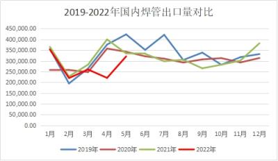 圖4 2019-2022年國內(nèi)焊管出口量對比
