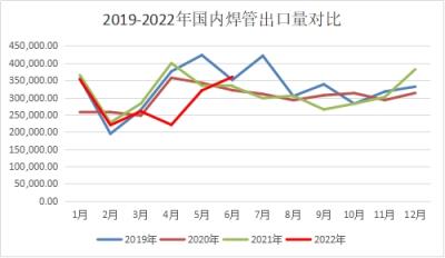 圖一 2019-2022年我國焊管出口量對比
