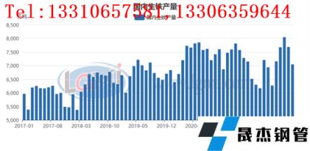 2022年7月份,由于受到淡季下游需求釋放不足、鋼企庫(kù)存去庫(kù)壓力加大以及鋼企陷入大幅虧損等因素的影響,無(wú)縫鋼管廠家的生產(chǎn)積極性明顯下降,厚壁無(wú)縫鋼管產(chǎn)量呈現(xiàn)快速回落的態(tài)勢(shì)。據(jù)國(guó)家統(tǒng)計(jì)局?jǐn)?shù)據(jù)顯示,7月份,我國(guó)粗鋼產(chǎn)量8143萬(wàn)噸,同比下降6.4%(詳見(jiàn)圖1);生鐵產(chǎn)量7049萬(wàn)噸,同比下降3.6%(詳見(jiàn)圖2);厚壁鋼管產(chǎn)量10624萬(wàn)噸,同比下降5.2%(詳見(jiàn)圖3)。1-7月,我國(guó)粗鋼產(chǎn)量60928萬(wàn)噸,同比下降6.4%;生鐵產(chǎn)量51090萬(wàn)噸,同比下降4.5%;厚壁鋼管產(chǎn)量77650萬(wàn)噸,同比下降4.6%。