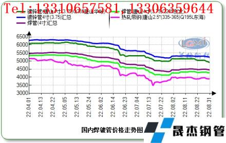 8月國內焊管、鍍鋅管價格震蕩攀高。據云商平臺監測數據顯示,截至8月31日,全國4寸(3.75)國標焊管平均價格4454元,比上月同期上漲90元,全國4寸(3.75)鍍鋅管平均價格5245元,比上月同期上漲35元;全國50*50*2.5方管平均價格4498元,比上月同期下跌1元;全國219*6螺旋管平均價格4807元,比上月同期上漲44元(詳見圖1);成交價格上漲過程,調幅相對靈活。